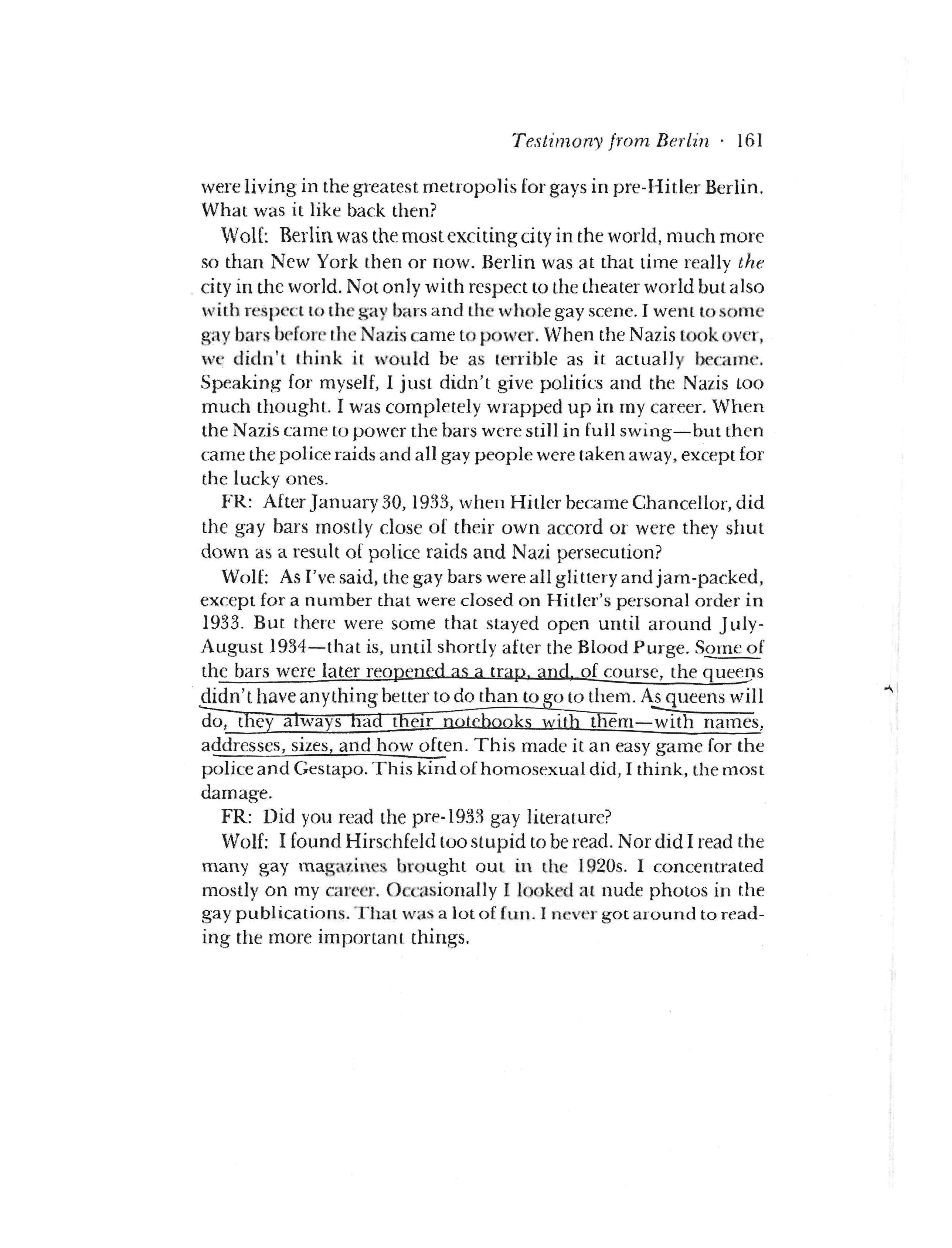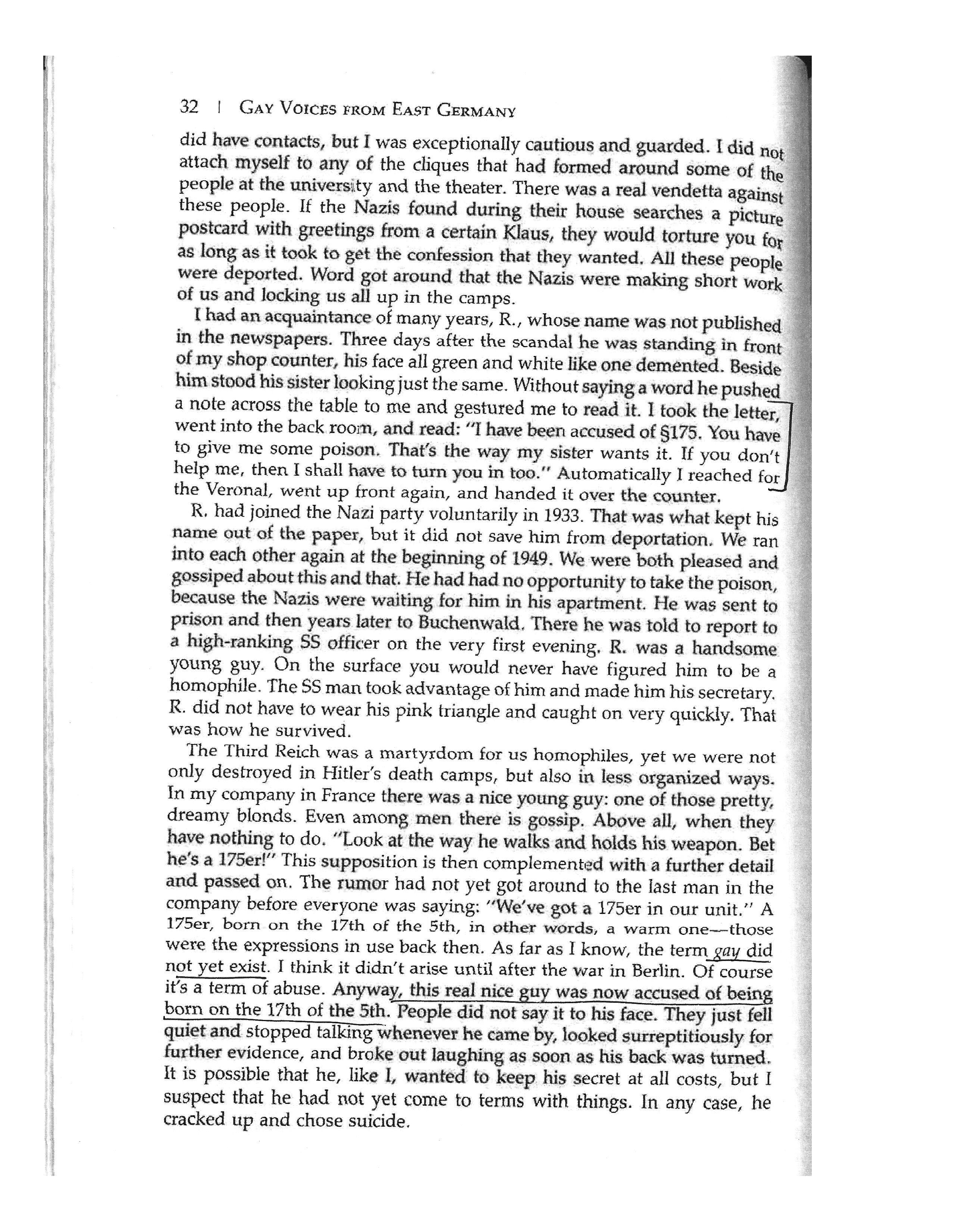 one thing i find myself thinking about a lot is the voices that have become silenced. i think of this primarily through people who have died, but it can relate to people who don’t have the power or privilege to speak up. we don’t really know their stories. especially if they don’t want to relive their stories. that leads to less information about the topics being known. but in a way, research is about highlighting these voices. you have to have some idea how you get to where you are. queer history everywhere, but also primarily in germany, would not be the same without the people who lived through these harsh regimes. their voices have just been diminished throughout history, to the point where we have to find a way to resurface them.